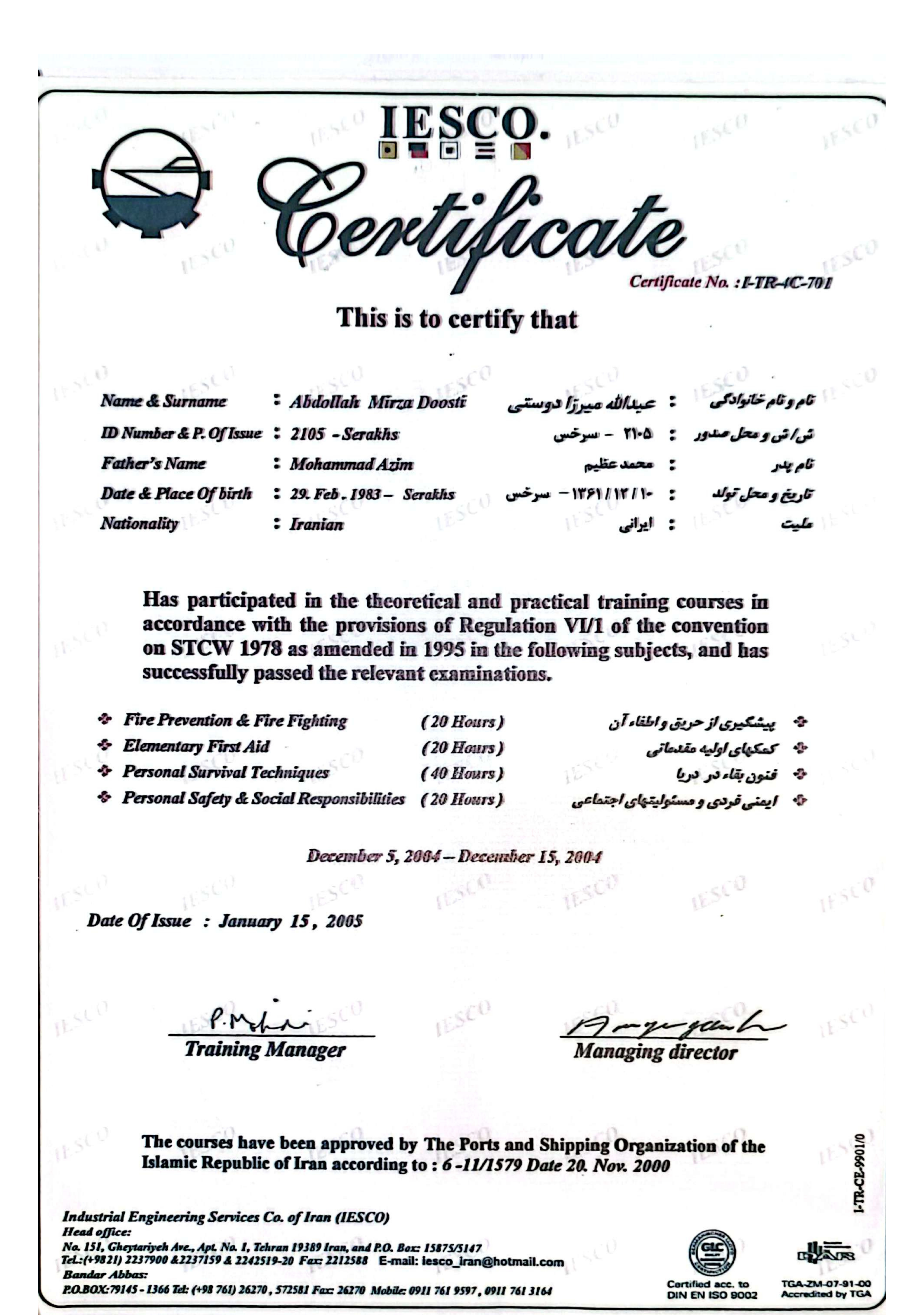 خدمات یکپارچه صیانت و بازسازی تجهیزات خشکی و فراساحلی.